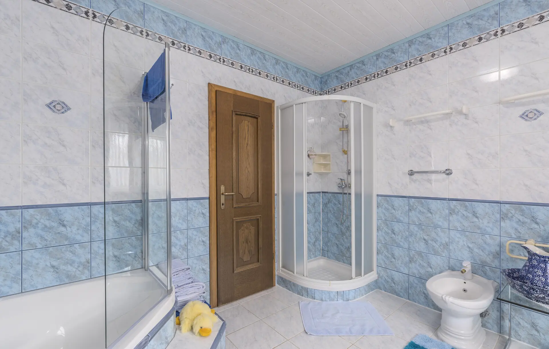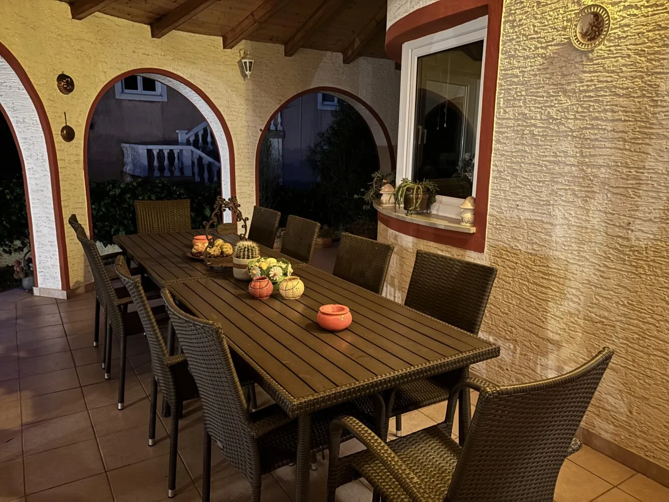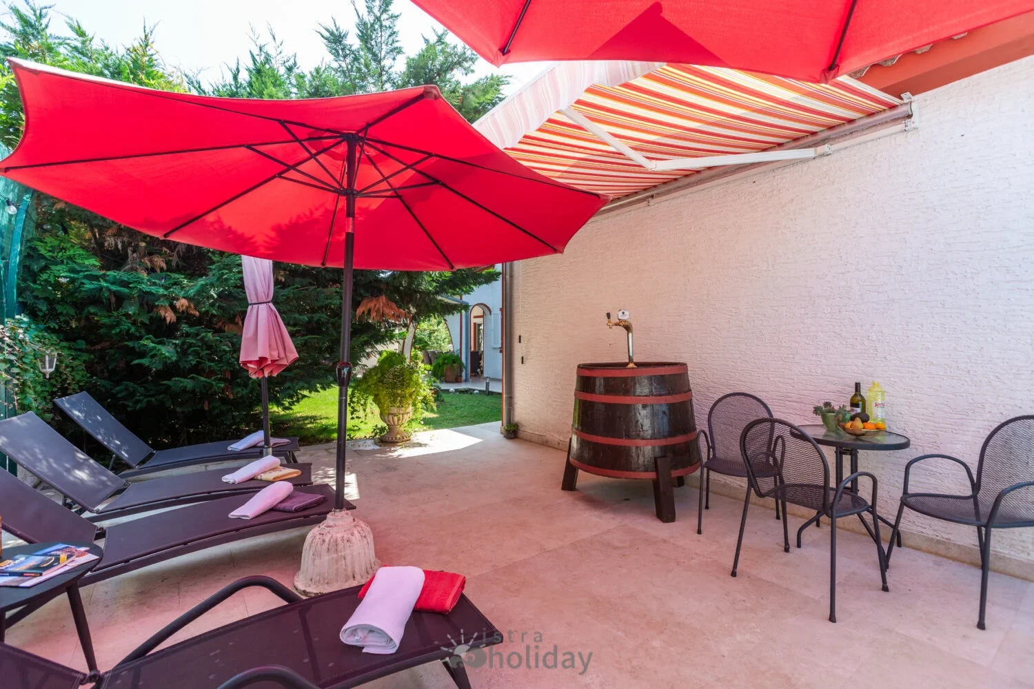 Umgeben von einem idylischen sehr großen gepflegten Garten mit einer wahren Blumenoase, befindet sich die Villa Aurea in der nähe vom Tourismuszentrum Porec. Dieses Anwesen kann bis zu 8 Gäste aufnehmen,daher gut geeignet für Urlaub mit Freunden oder der Familie. Im Garten mit natürlichen Schatten durch die wunderschön sehr großen Palmem, befindet sich auch der Saisonale Privatpool mit Liegestühlen und einem Relaxbett. Ihre köstlichen Grillgerichte können Sie in der Sommerküche zubereiten. Das Innere der Villa ist außergewöhnlich. Im offen gelegenem Ergeschoss befindet sich das Wohnzimmer sowie eine gut ausgestattete Küche und Essbereich. Hier befindet sich auch ein Schlafzimmer und ein Bdezimmer. Von der Küche aus haben Sie direkten Zugang zu der überdachten Terrasse, wo Sie auch Ihre Mahlzeiten genießen können. Im Obergeschoss befinden sich 2 weitere Schlafzimmer, jeweils mit Balkon und einem Badezimmer. Ein abgegrenztes Apartment mit Wohn-und Essbereich , einem Schlafzimmer, einem Badezimmer und Balkon, ist geeignet für Gäste welche mehr Privatsphäre vorziehen. Ein weiteres Highlight ist der Turm der Villa mit traumhafter Blick auf das Adriatische Mittelmeer. Das Domizil ist komplett klimatisiert. Entfernung Strand 2,5 km. Entfernung a la carte Restaurant 0,5 km. Entfernung Market 0,5km. 2 Garagen und 2 weitere Parkmöglichkeiten stehen Ihnen auf dem komplett eingezäunten Grundstück zur Verfügung. Wir wünschen Ihnen einen erholsamen Urlaub in der Villa Vallis Aurea